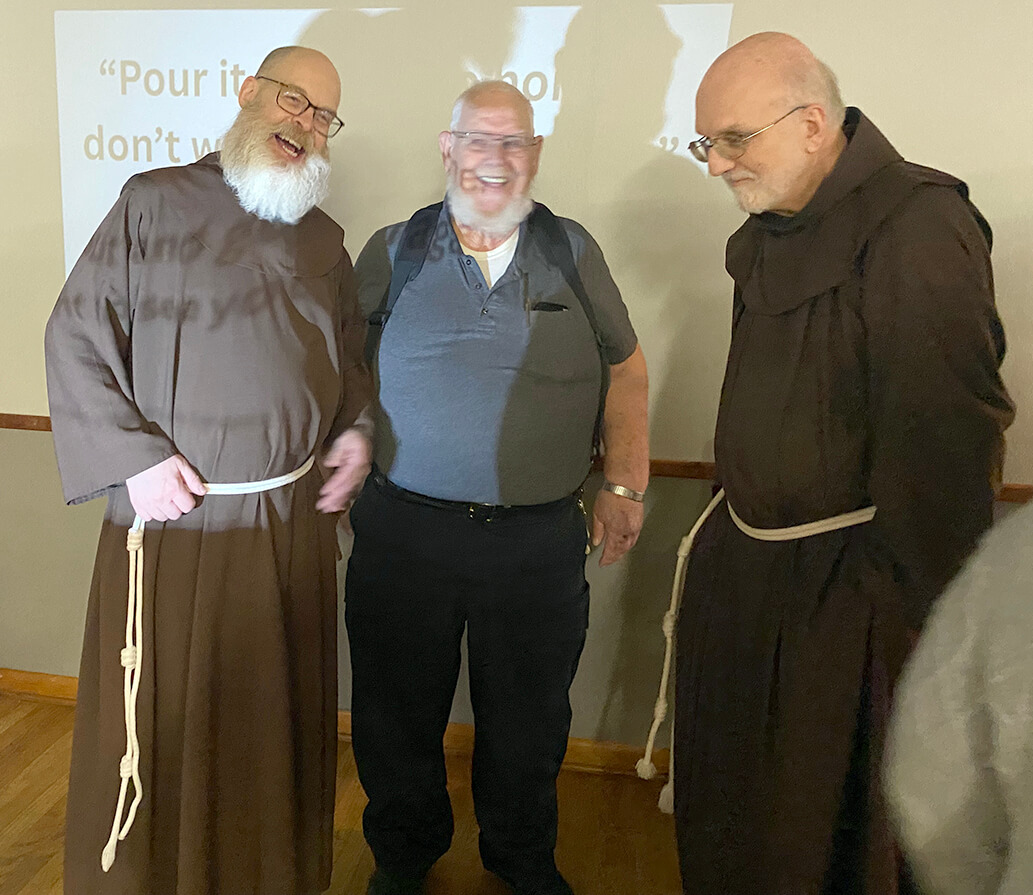 Pictured are Father John Barker, pastor at Holy Family Church in Oldenburg, Bill Dramann, and Father E.J., Associate Pastor.
