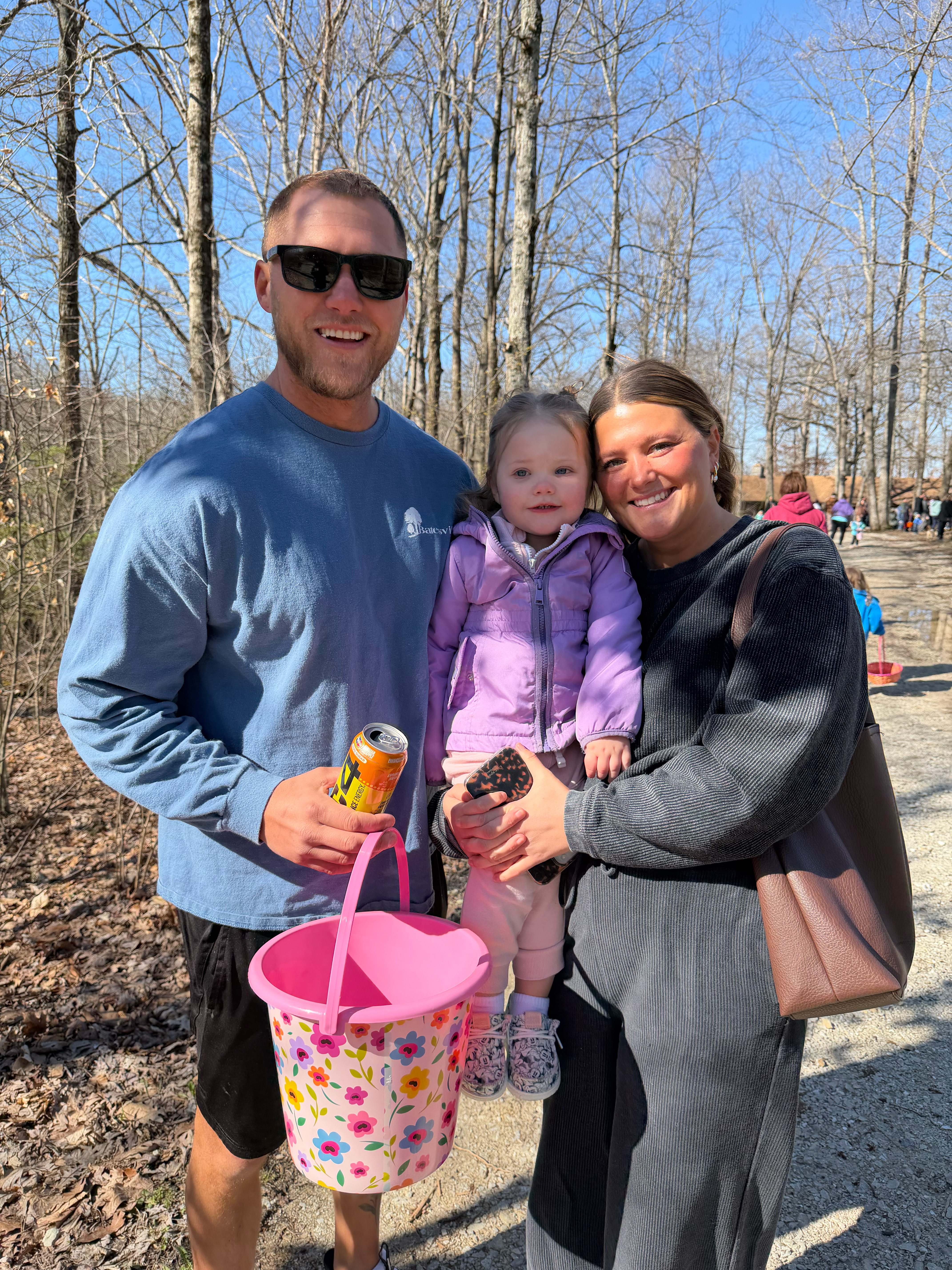 Rori Meisberger, age 2 of Versailles, is with her parents Nathan Meisberger and Morgan Meyer as they get ready for the Easter Egg Hunt. She had just visited with the Easter Bunny.
