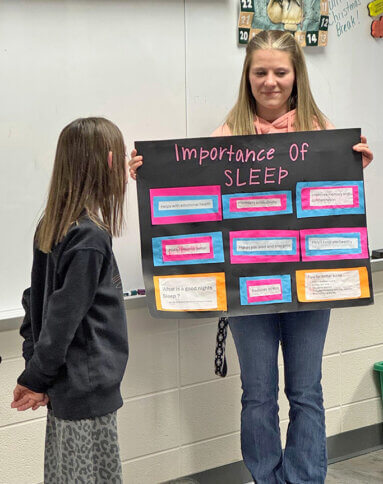 The “Wellness Topics” presentations have been a favorite. This program is where each Ambassador chooses a topic and a month to present. They are then required to make a poster and activity/game on their topic. They then go around the building and present on their topics. This is beneficial in so many ways. It not only is teaching the younger students valuable life lessons and life skills, but it is a confidence builder for the Ambassadors. Additionally, it is a great chance to work on public speaking, etc. This school year’s presentations, to date, have been on the topics of “Healthy Snacks” and “Respect”. December’s topic is the “Importance of Getting Enough Sleep”.