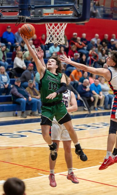 South Ripley’s Drew Volz streaks to the bucket for two of his 28 points in a monster performance on Tuesday night. The Raiders with the win against Southwestern are now in control of the ORVC standings.