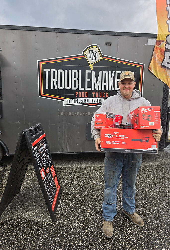 Pictured is Andy Comer, of Holton, on Friday, Nov. 14 at Halcomb Home Center Milwaukee Sale. He got sweet deals on his Milwaukee tools and was getting ready to get his free breakfast from Troublemakers Food Truck. Every customer who spent at least 50 dollars received a free voucher to purchase a meal.