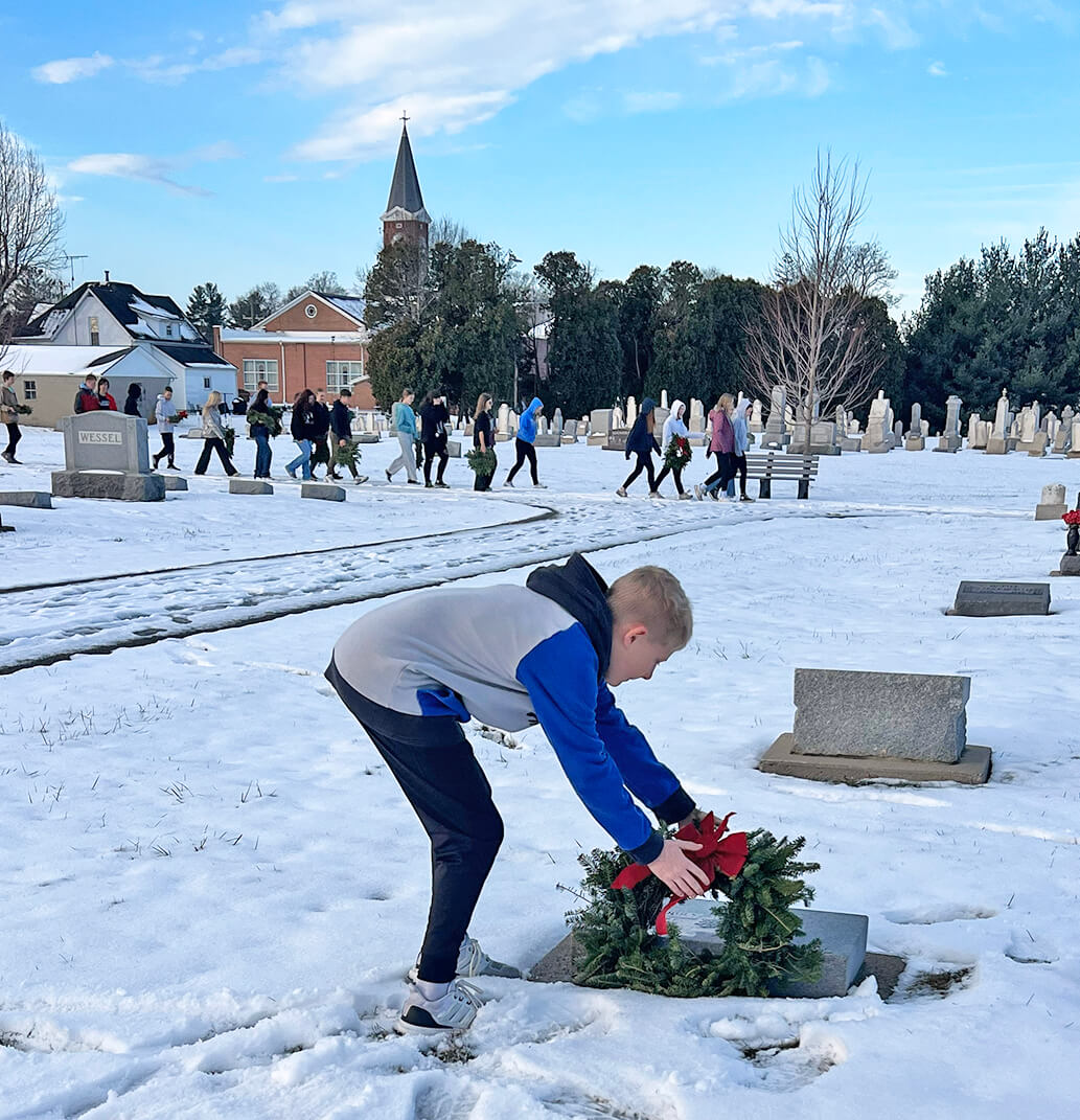 Wreaths Across America Day took place Saturday, December 13 at 4,600 participating locations across the country. Our nation’s heroes were remembered as over two million volunteers helped place more than 2.7 million veterans’ wreaths on headstones of our fallen across the country. Pictured is Noah Bastin who laid a wreath on his grandfather’s grave at St. John’s UCC, Huntersville.